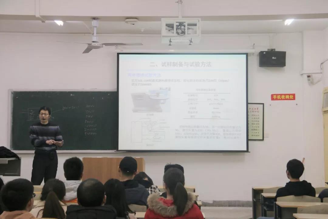 易老师简单的自我介绍后为大家阐述了大学研究的意义及方式方法,就Fe—B合金的结构进行了分析,对其微观结构与材料应用间的关系进行了介绍。随后,他针对本科毕业生论文的内容与格式做出来明确要求,纠正了同学们在毕业论文中常见的问题。