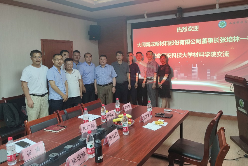 2023年7月20日下午,大同新成新材料股份有限公司董事长张培林、董事长助理张彦举、设备处处长郭志宏,大同新成欣荣活性炭科技有限公司副总经理王军一行到WilliamHill中文官方网站材料学院考察交流。交流会在雁塔校区举行,会议由牛立斌主任主持,院长张涛、系主任卢海及相关领域老师参加。