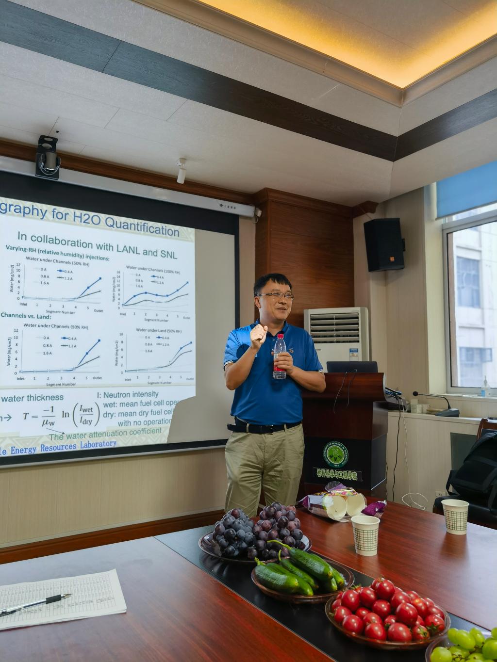 聚合物电解质膜(PEM)燃料电池是直接将燃料中储存的化学能转化为电能的电化学装置。王云教授报告围绕质子交换膜燃料电池(PEMFC)基础科学和关键技术问题,从材料、工艺、仿真模拟等多角度进行了剖析介绍。主要涉及冷启动材料,材料的随机建模,多孔材料,两相流,材料异质性和低铂电极。还针对美国加州如何部署FCEV需要广泛的加氢站网络进行了介绍,有效的拓宽了师生在燃料电池领域的视野。