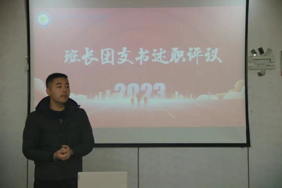 杨宝华书记对本次述职评议大会做了总结,首先,杨宝华老师对参加评议的班长团支书进行了表扬,对他们2023年所取得的工作表示肯定。同时提出三点要求:一是要继续加强学生的理论知识学习,督促学生积极努力完成学习任务,加强学生干部对于班级管理工作经验的学习,争取带领班集体取得更优异的成绩;二是作为学生干部,应该充分发挥带头作用,积极促进班级学风、舍风建设,良好的学风、舍风建设有利于学生的学习成长和学院的发展建设;三是希望同学们通过本次评议总结找到不足,在2024年取得更大的成绩。最后杨宝华书记和同学们分享了习近平总书记在对中国农业大学的学生回信中提到的“自找苦吃”,希望当代青年不畏艰难困苦、以苦为荣、苦中作乐,拼搏奋进、坚持不懈,利用一切机会磨砺自己。