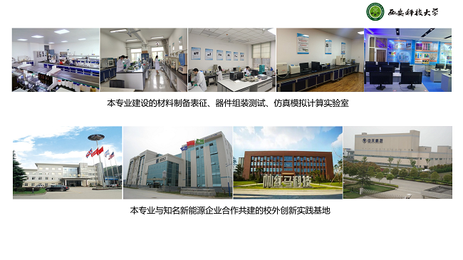 教学条件:本专业拥有1000余平方米的科学实验场地,各类实验器材300余台套,包括扫描电镜、X射线衍射仪、同步热分析仪、电化学工作站等,总价值超过1000万元。基于这些实验条件,建设有新能源材料制备、新能源器件组装、电化学性能测试、材料设计与器件仿真等多个专业实验室。此外与省内外新能源企业合作,还建立了10余个校外创新实践基地,每年承担学生实习实训、认知实践、创新创业等教学任务。