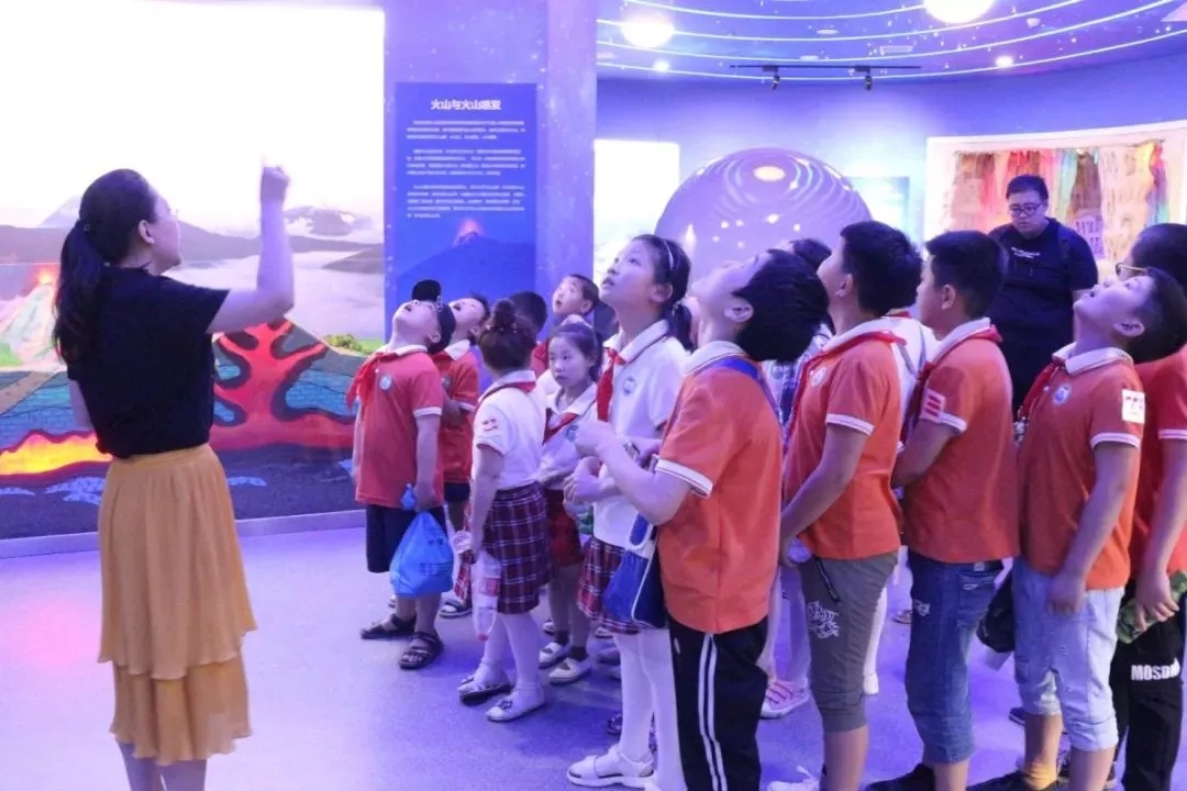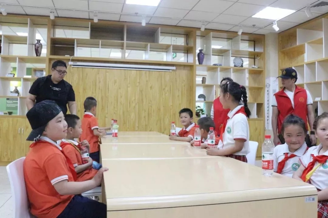 范龙和胡鑫婧同学带领小学生们参观科技馆,一进入科技馆,大家就被丰富多样的展厅所吸引,孩子们更是迫不及待地投入到了观察与探索之旅。温兆发和田紫凡同学带领小学生们参观图书管,图书馆作为最具大学校园文化特色的地方,洋溢着浓郁的学习氛围,为了不影响其他人的学习,学生们也都安静有序地参观。