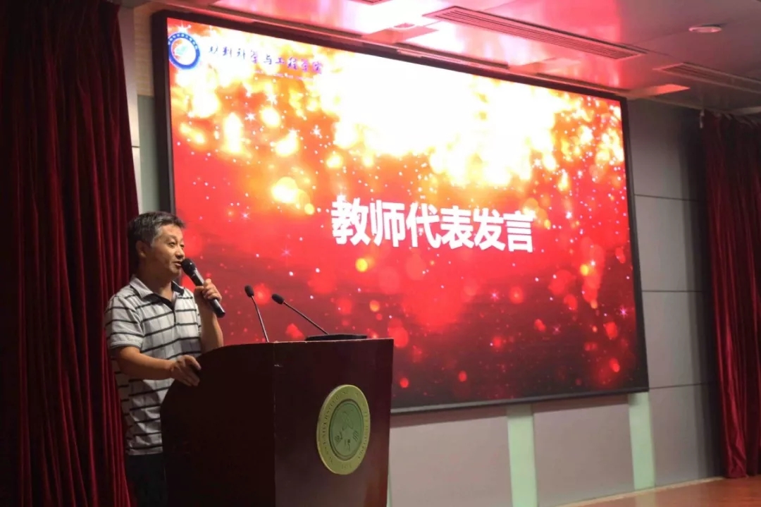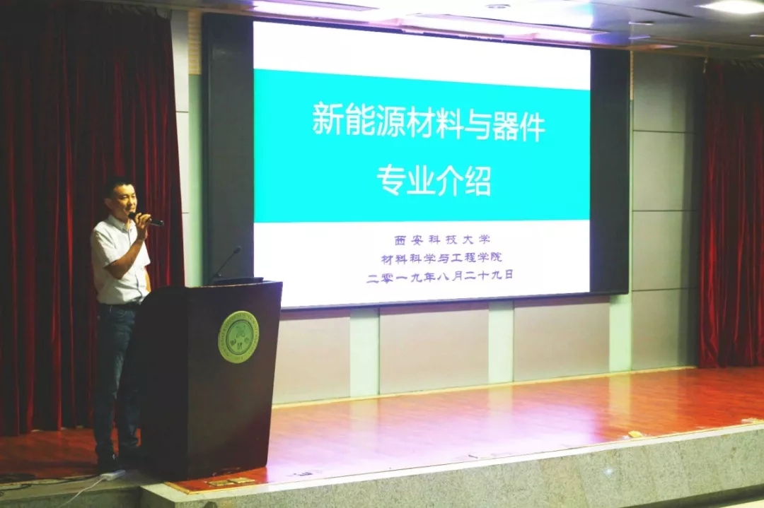 晚上7点整,主持人宣布会议正式开始。大会开始奏国歌。随后,在校代表生冉鹏同学发言,首先向新生表示热烈欢迎,希望新生本着“良好的开端是成功的一半”的心态,抓住大学四年这宝贵的时光,不畏梦想,不惧将来。之后,教师代表刘向春老师谈到同学们要尽早树立自己的大学目标,要学会自我管理,自我约束。新生代表杨李轶楠同学表达了来到西安科技大学的喜悦,以及对父母的感谢,对学院领导,老师的感谢。她提到大学是一个全新的开始,应投入饱满的热情融入其中,用实际行动努力成为合格的西科人。随后,杜院长寄语2019级新同学,四年的学习生活中要立德修身、凡事认真、抓紧大学生活。杜院长指出,品性决定能否在社会上立足,恒心和毅力更是成功的关键。最后,孟昭副教授、邓军平副教授、李颖老师、卢海老师分别介绍材料科学与工程专业、无机非金属材料工程专业、高分子材料科学与工程专业、新能源材料与器件专业。