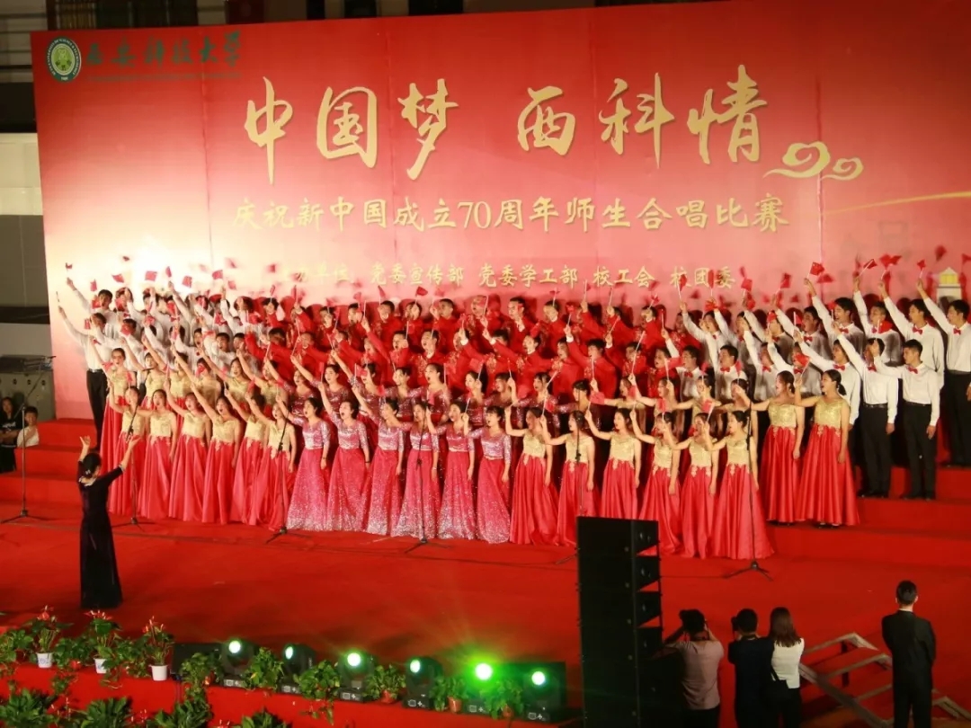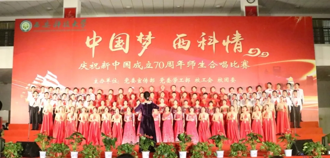 为歌颂新中国成立70年来的奋斗历程和辉煌成就,西安科技大学于9月29日晚在临潼校区骊山校园体育馆举办了歌颂新中国成立70周年师生合唱比赛。WilliamHill中文官方网站师生用嘹亮的歌声、火热的激情向祖国献礼。本次比赛表演曲目为《我和我的祖国》和《西安科技大学之歌》。