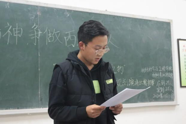 11月1日,材料学院于临潼校区骊山校园1教1楼教室举办第十九“以青春之名 赴时代之约”大学生四年规划演讲比赛初赛。本次演讲比赛由材料学院团委宣传部主办。第十八届四规比赛优秀选手和部分学生干部担任评委。20级全体学生参与本次比赛。