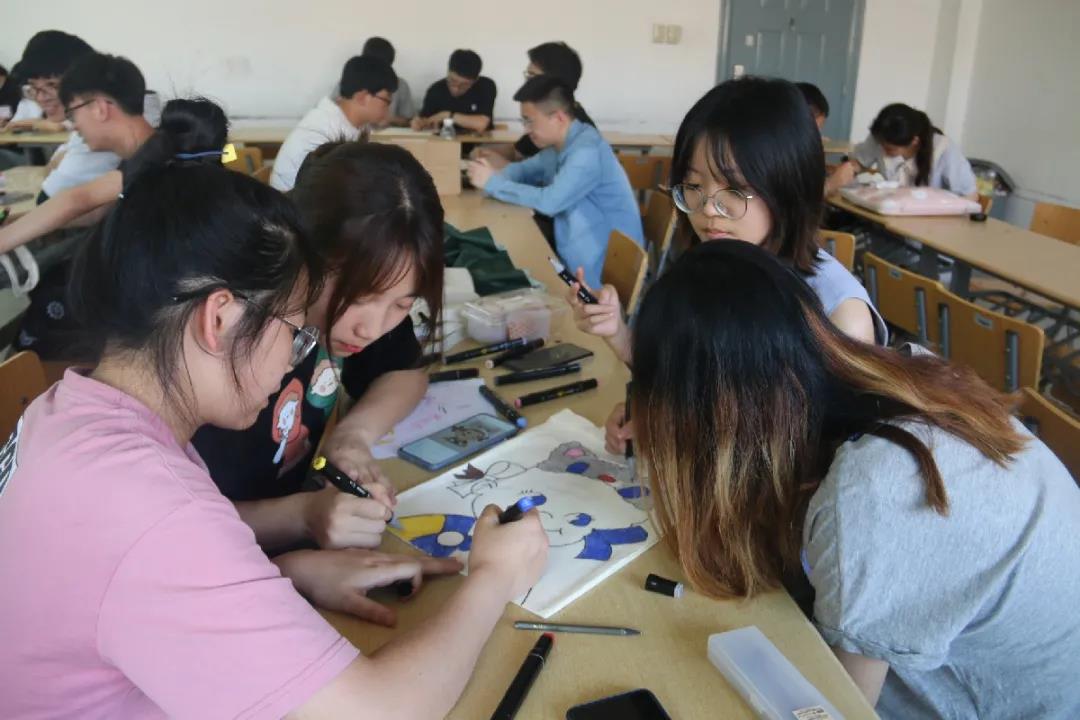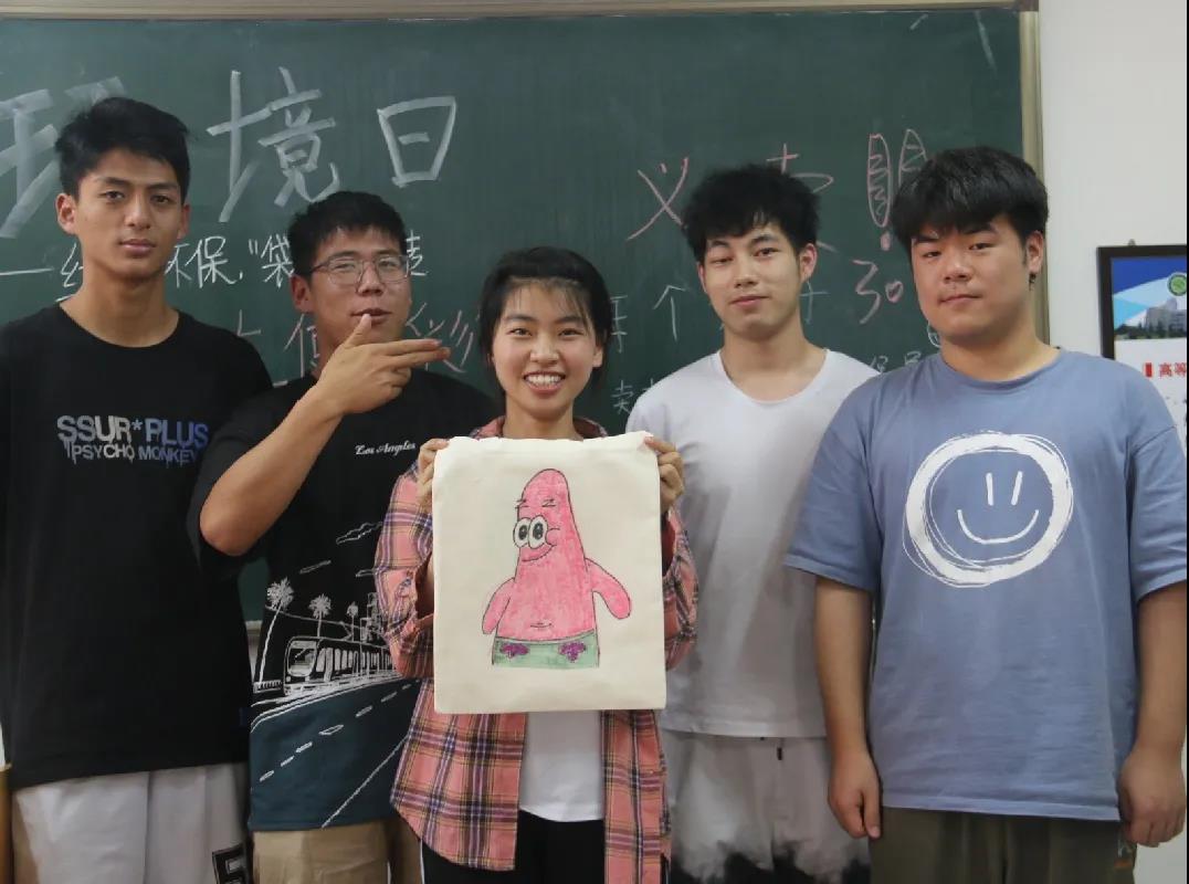 大家拿起彩笔,组队合作,共同完成一幅幅精美的画作。经过大家的团结合作,最终都完成了环保袋的创作。