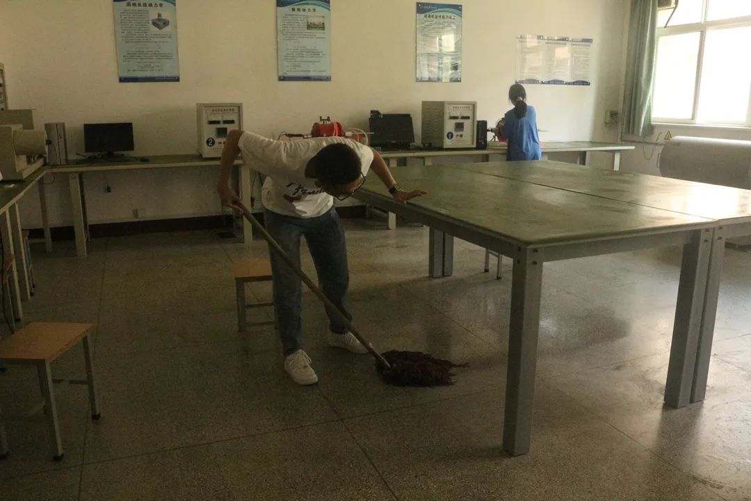 活动安排,签到及工作安排,随后开始义务劳动。劳动过程中,同学们各司其职,将各个实验室的每个角落仔细打扫干净,既减少了实验室安全隐患,也还给实验室一个整洁的环境。