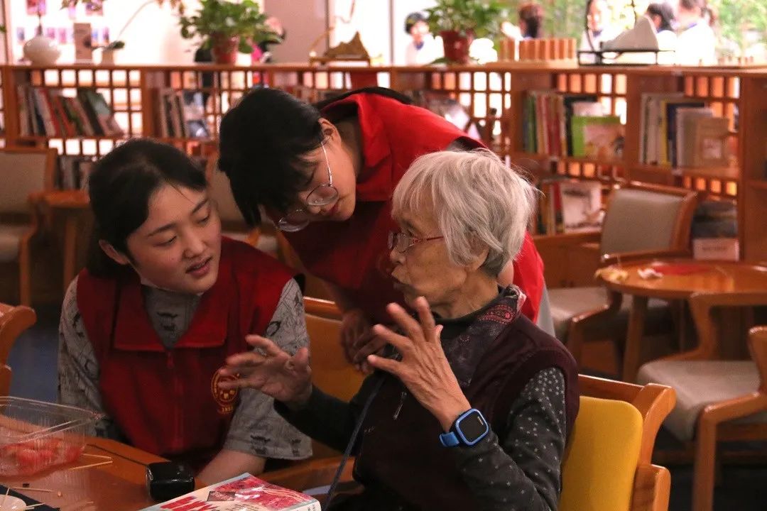 老人们为同学们展现太极的妙处,经典的诗朗诵让同学们更加珍惜自己的青春年华;同学们为老人们带来流行歌曲、热门舞蹈和富有青春活力的诗歌,让老人们回忆起自己当年的青葱岁月。表演结束后,同学们和老人们聊起了天,老人们回忆起了当年青春岁月,讲述自己平淡而不平凡的一生。有的老人给同学们展示他们的剪纸技艺和的书法。至此,本次活动圆满结束。