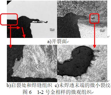 1)根据金相显微镜结果,观察是否有微裂纹的存在,微裂纹和宏观裂缝是否有关联关系?微裂纹起源于什么部位?这些部位有何特点?引导学生从几个方面思考材料的缺陷的起源及发展。所得金相显微照片如下图所示。